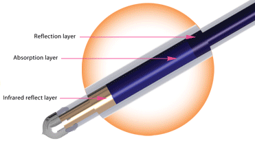 | infrared layer reduces the radiant emission that allows the tubes to work well in the coldest of temperatures. |