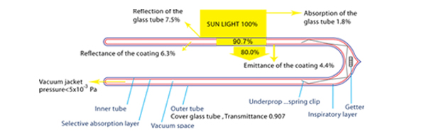 | Endures extreme temperatures – The vacuum degree equals 5 x 10-³ Pa which insulates the inner tube and reduces heat emission whilst the |